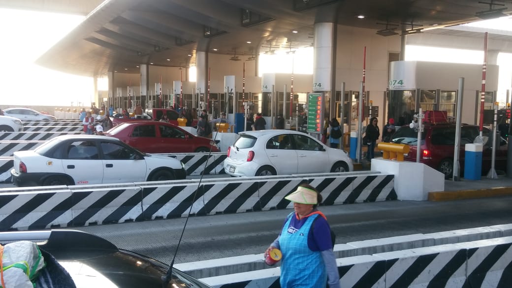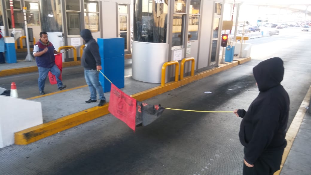 Los manifestantes levantan las plumas de las casetas de cobro y dejan pasar a los automovilistas, no sin antes pedirles cooperar económicamente con su movimiento.
