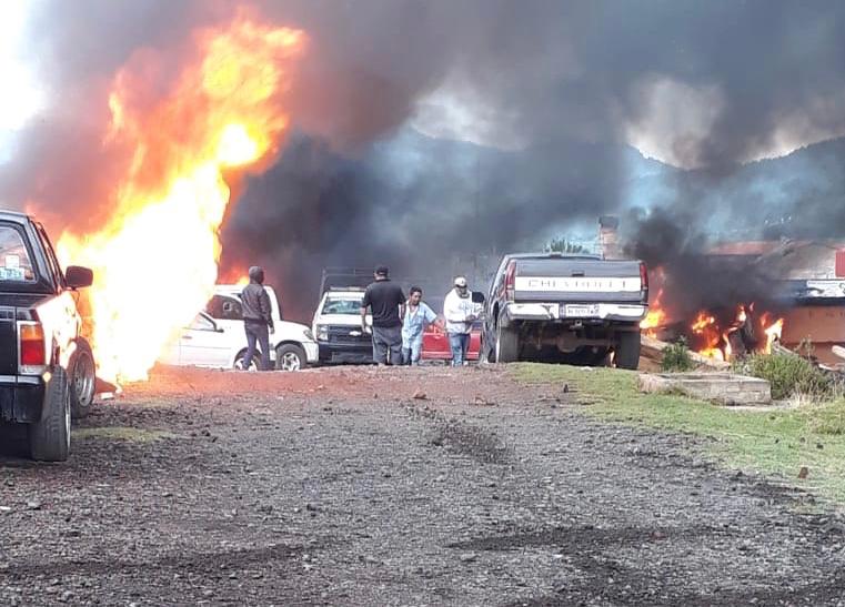 Habitantes del municipio de Cherán, Michoacán, quemaron al menos seis vehículos en protesta porque un joven fue asesinado presuntamente por guardianes de la Ronda Comunitaria.