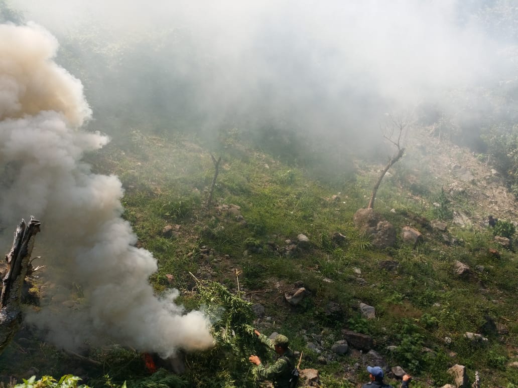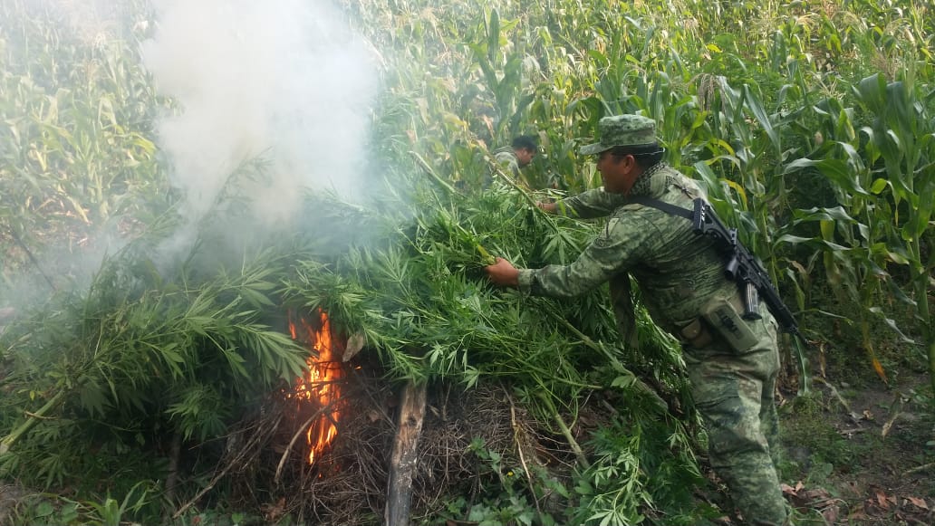 Al rededor de ocho mil plantas de mariguana fueron quemadas tras localizarlas en el municipio de San Juan Chamula, en Chiapas.