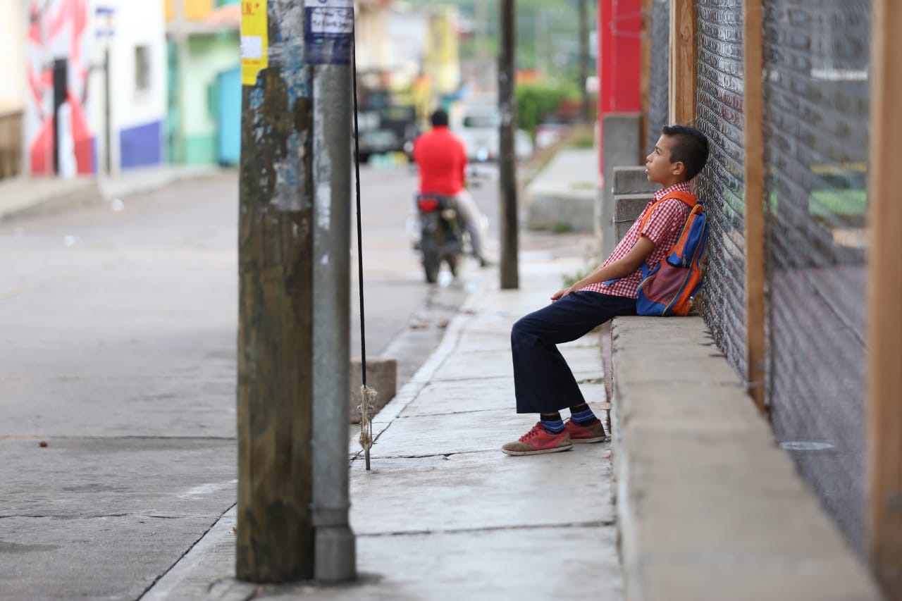 America Zapata Trinidad también trajo a su hijo a la escuela. Se aleja a paso veloz, pero comparte lo que piensa sobre la situación de los menores.