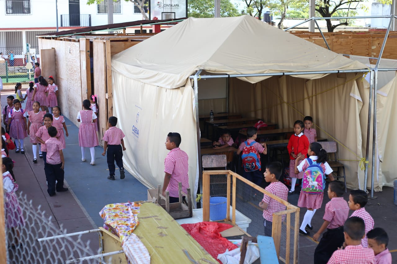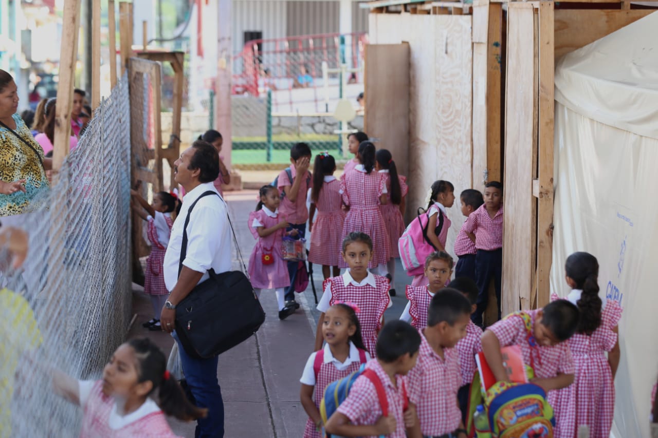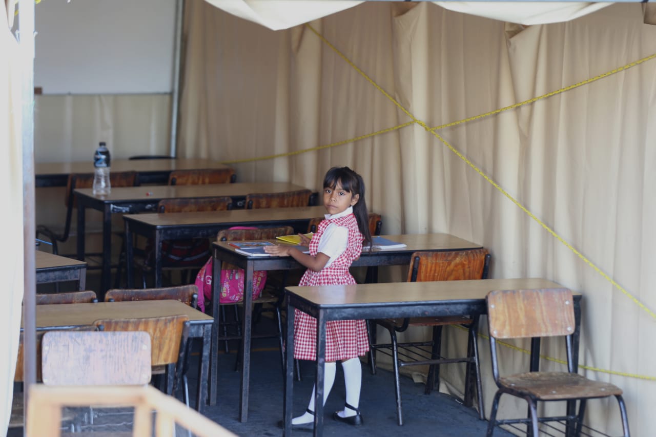 Por la mañana, en su escuela temporal, a los niños se les ve contentos; es apenas la segunda semana de clases del ciclo escolar.