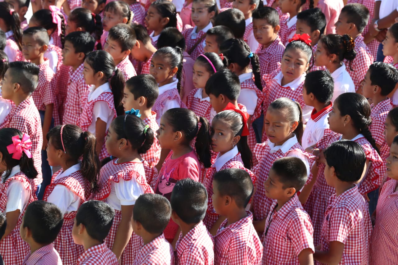 Es lunes y los niños realizan los honores a la bandera bajo el rayo del sol en un teatro al aire libre, que es parte del mismo complejo donde se encuentra el domo. En formación perfecta, realizan la ceremonia.