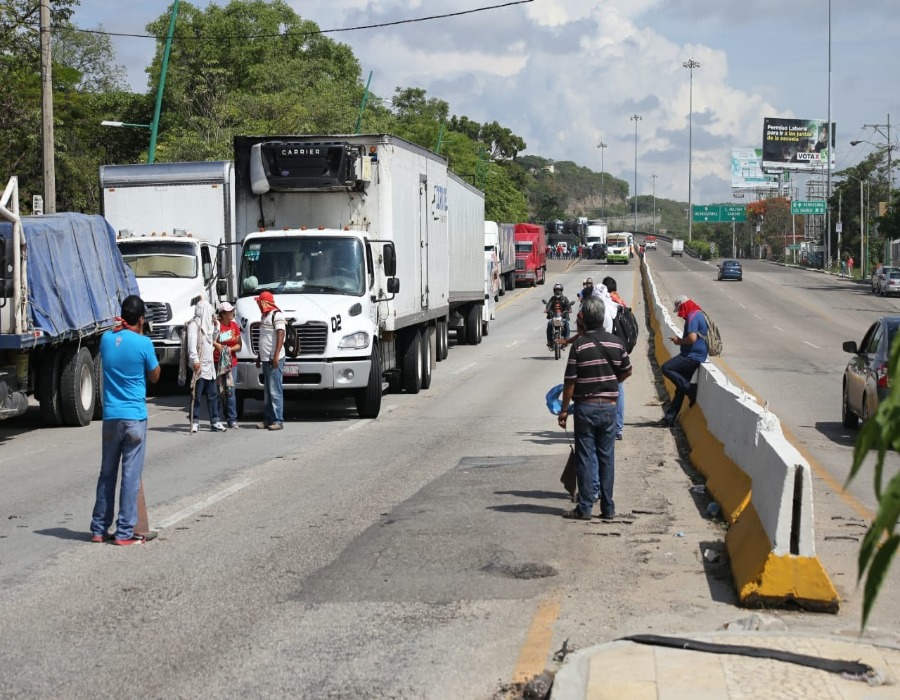 Debido al bloqueo, hay largas filas de vehículos pesados detenidos desde el entronque al municipio de Berriozábal; elementos de la Policía Federal desvían el paso del transporte de carga para colocar las unidades en zonas seguras y evitar que sean vandalizadas.