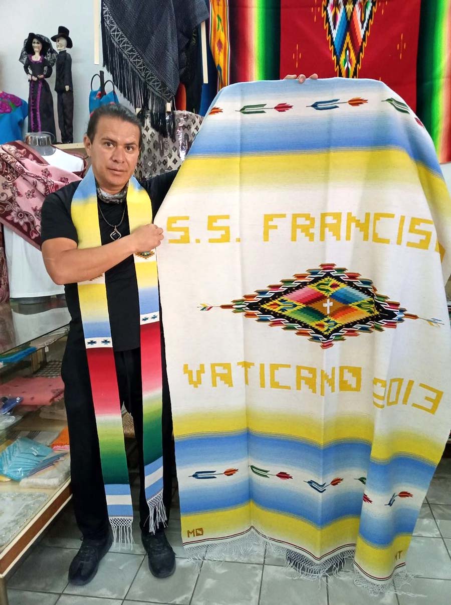 “La familia Oyerzábal a todos los Papas les ha regalado un sarape y en esta ocasión me tocó a mí elaborar el del Papa Francisco”.