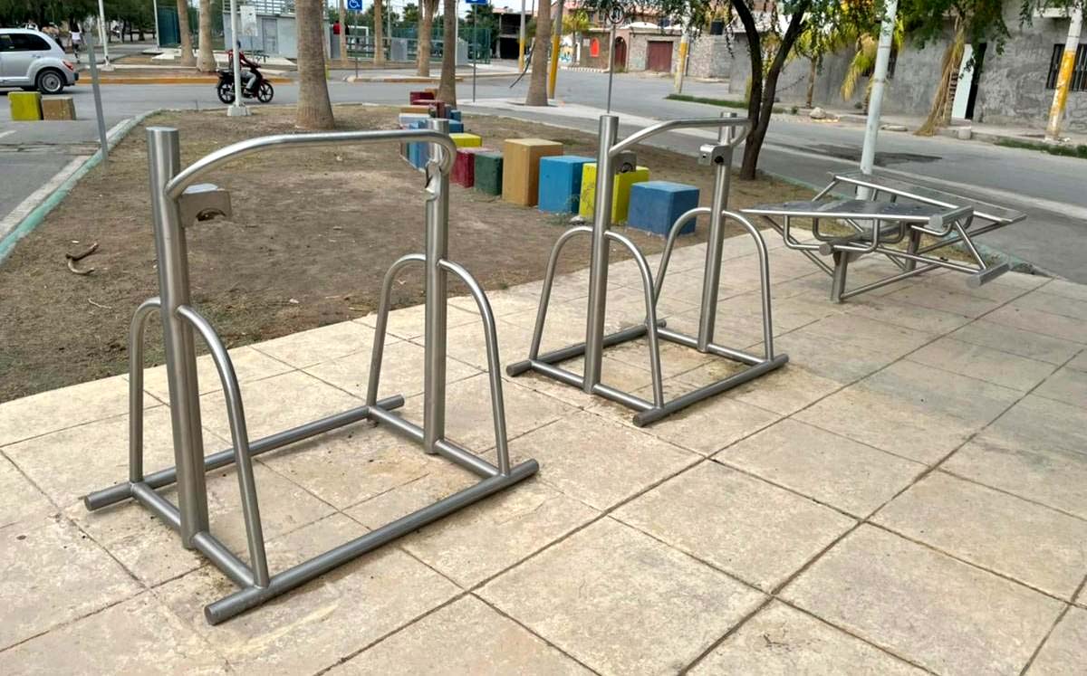 El gimnasio al aire libre solo ha quedado en estructura porque ya no tienen las cadenas y pedales de las bicicletas y escaladoras y los tubos para poder hacer ejercicio.
