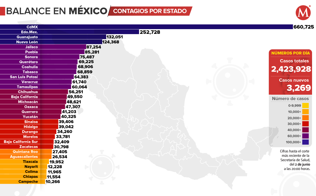 En tanto, la letalidad del coronavirus a nivel nacional es de 9.4 por ciento, lo que implica que han muerto alrededor de nueve personas por cada 100 que se han contagiado.