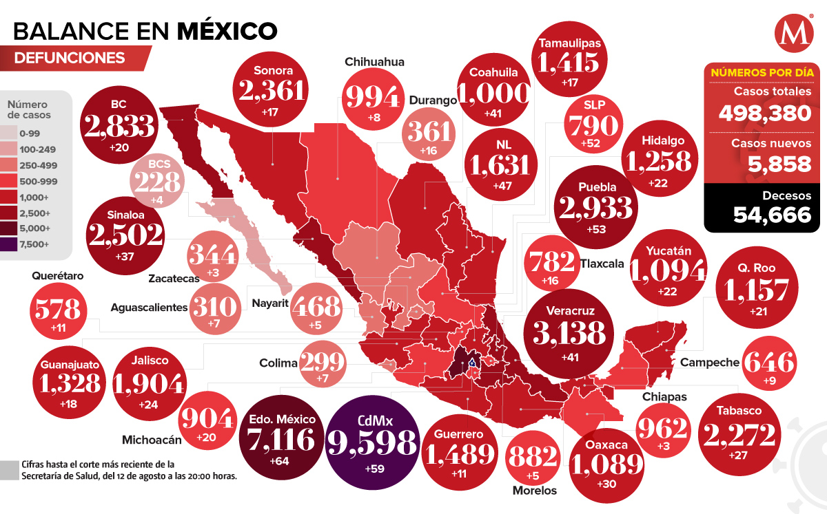 En tanto, Morelos tiene la mayor tasa de letalidad de covid-19, pues por cada 100 personas que han contraído la enfermedad han muerto alrededor de 20.