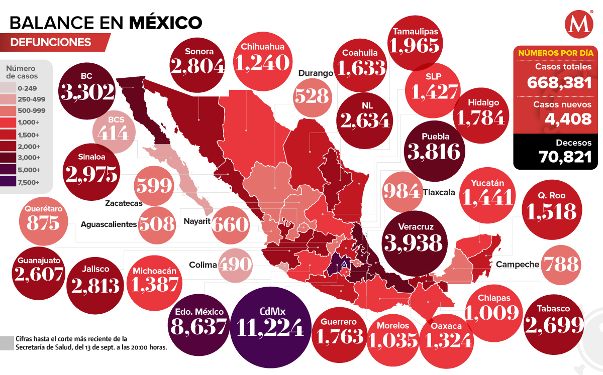 Mapa de defunciones por coronavirus en México