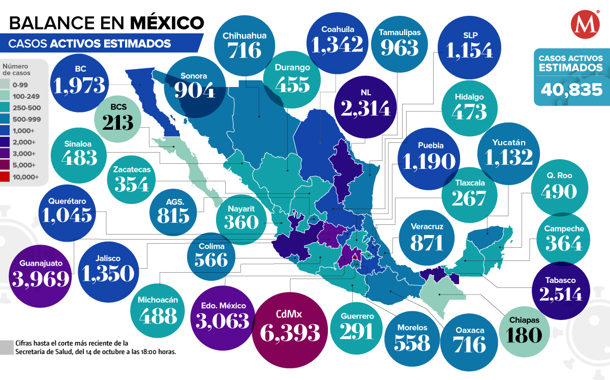 En contagios por estado, la Ciudad de México se posiciona en el primer puesto con 960 mil 463 contagios nuevos, seguido del Estado de México con 369 mil 465, Nuevo León 201 mil 015 y Guanajuato con 181 mil 853.