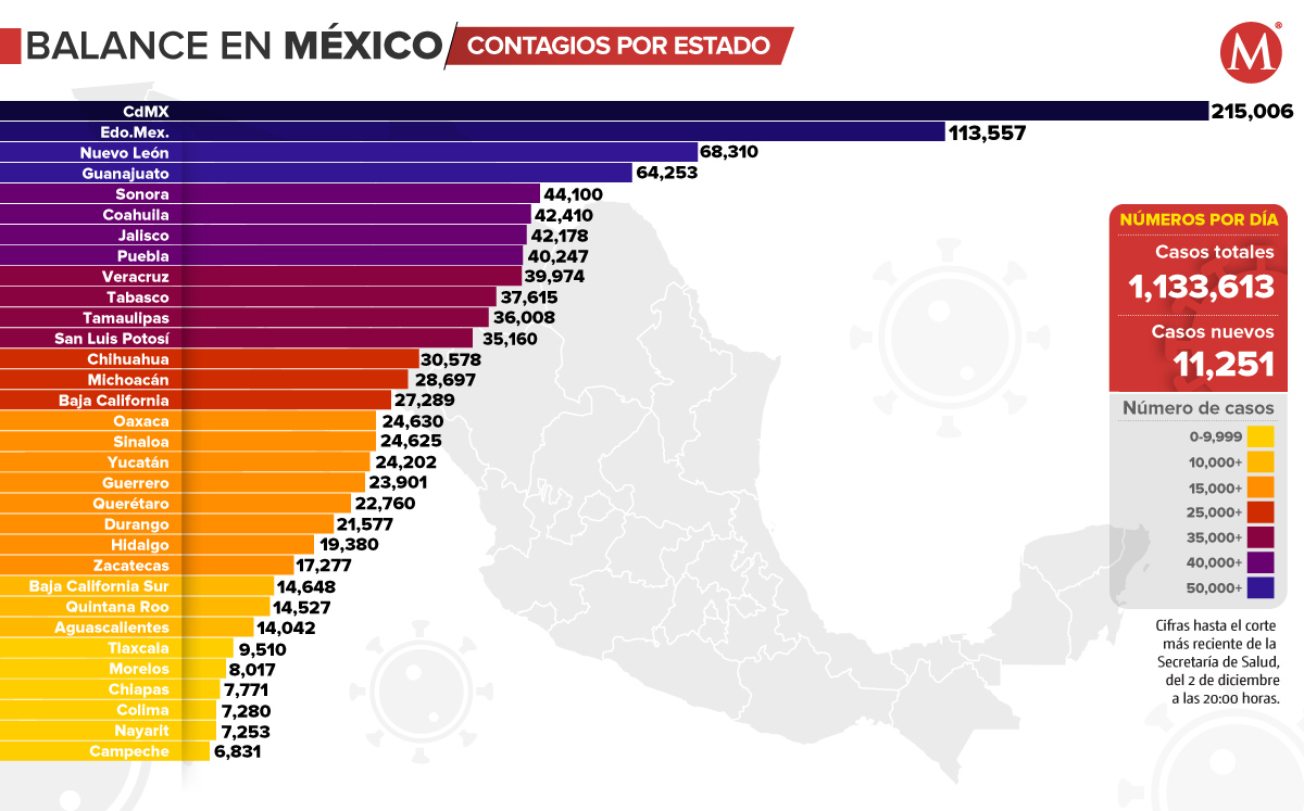 Casos de coronavirus en México por estados