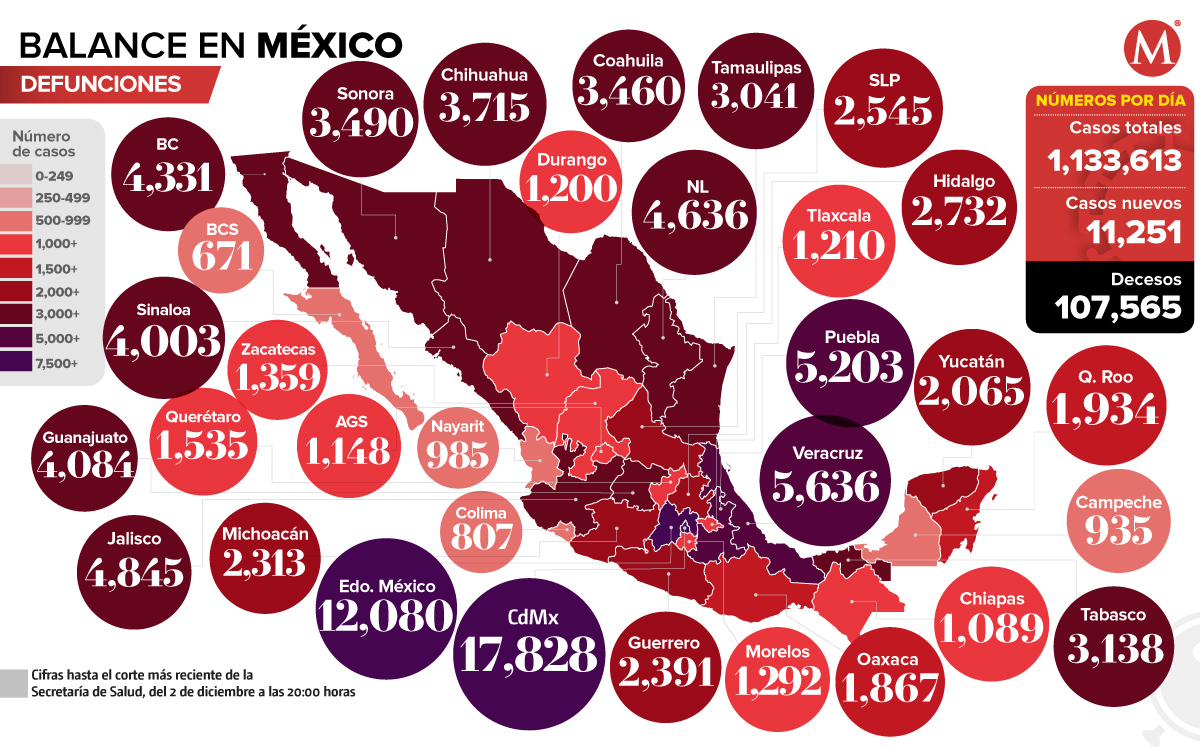 Mapa de muertes por covid-19 en México