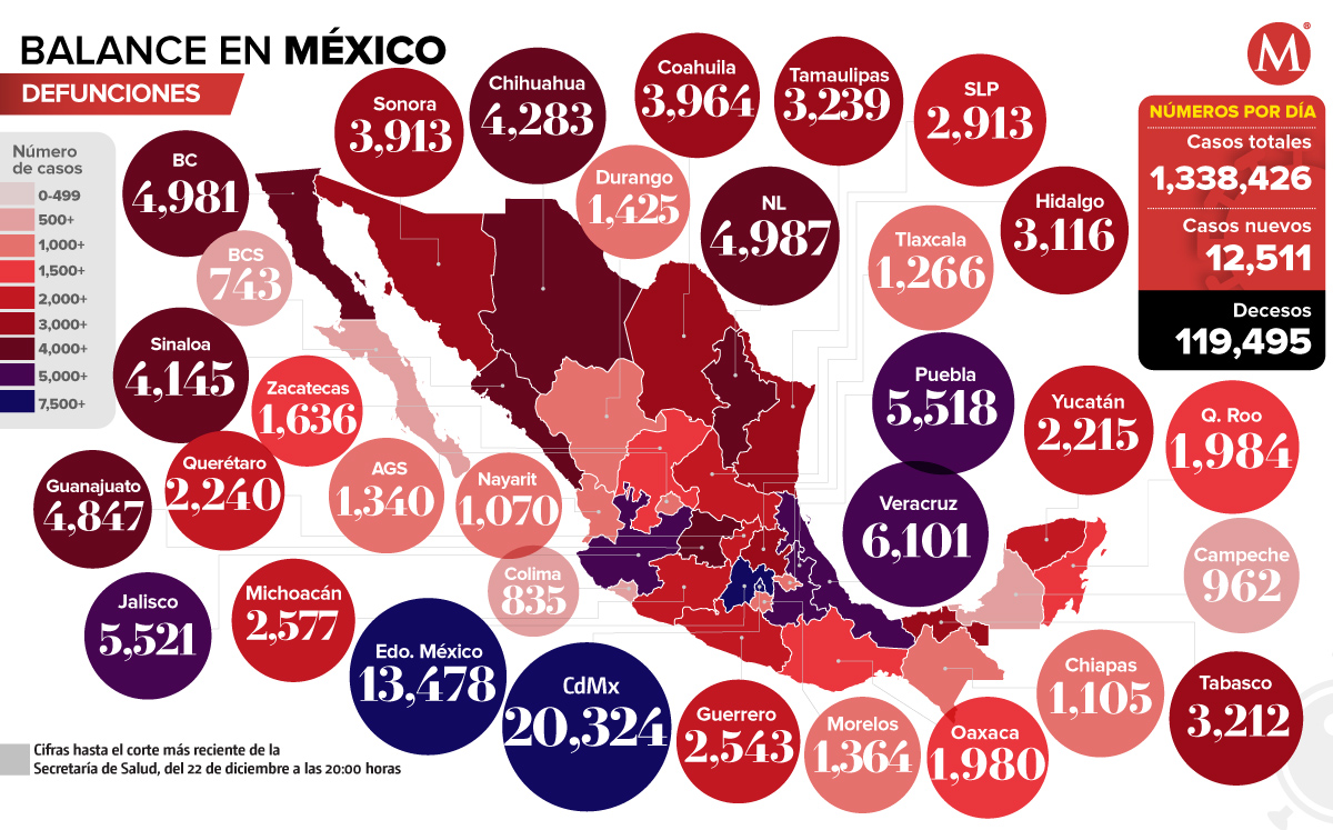 Mapa de muertes por coronavirus en México