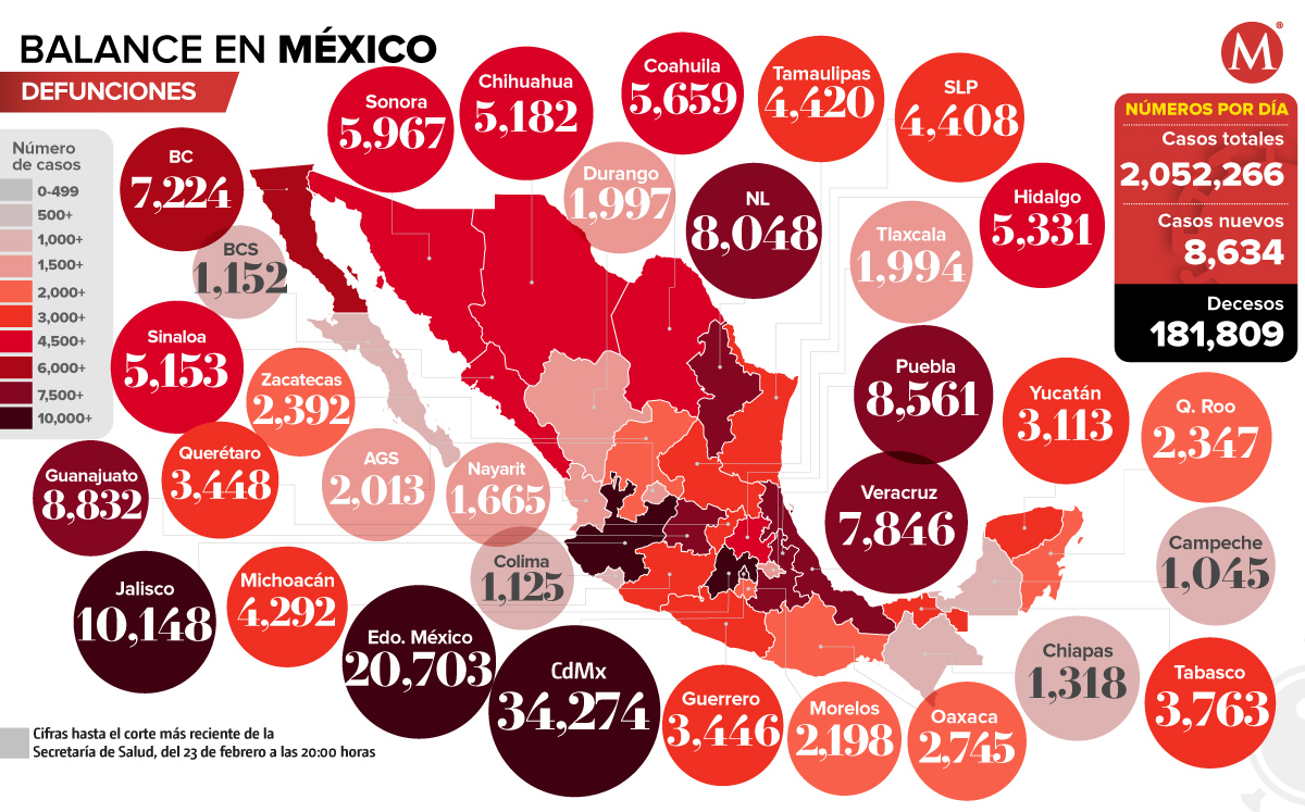 De acuerdo con datos de la Secretaría de Salud, el Estado de México tiene más del doble de las defunciones confirmadas en Jalisco, que es el tercer estado con mayor número de defunciones; mientras que la Ciudad de México, tiene el triple.