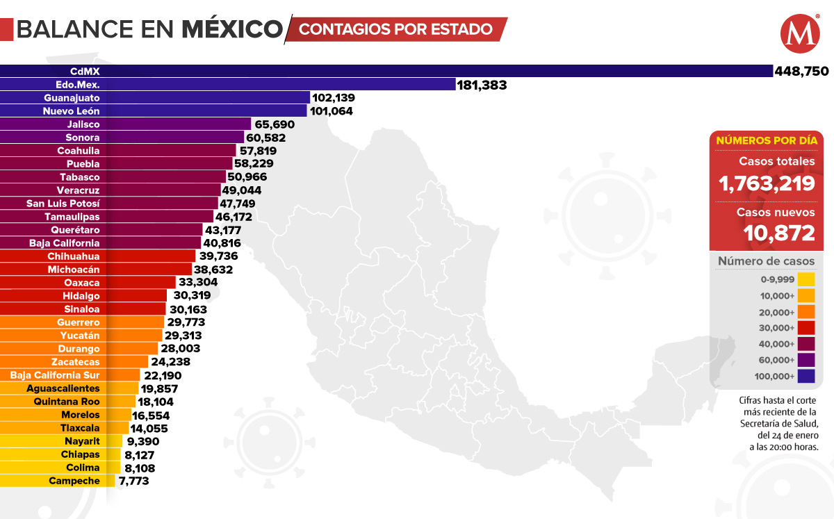 Además, la capital del país también es la entidad donde la tasa de incidencia de casos acumulados es mayor, con 4 mil 975.80 contagios por cada 100 mil habitantes.