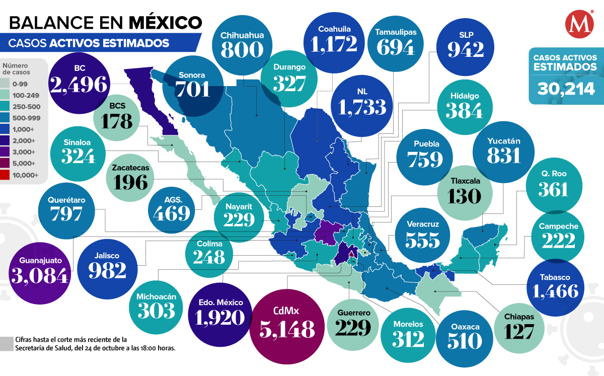En contagios por estado, la Ciudad de México continúa en la primera posición con 967 mil 529 casos nuevos, seguido del Estado de México con 372 mil 485, Nuevo León con 202 mil 930 y Guanajuato con 186 mil 258.