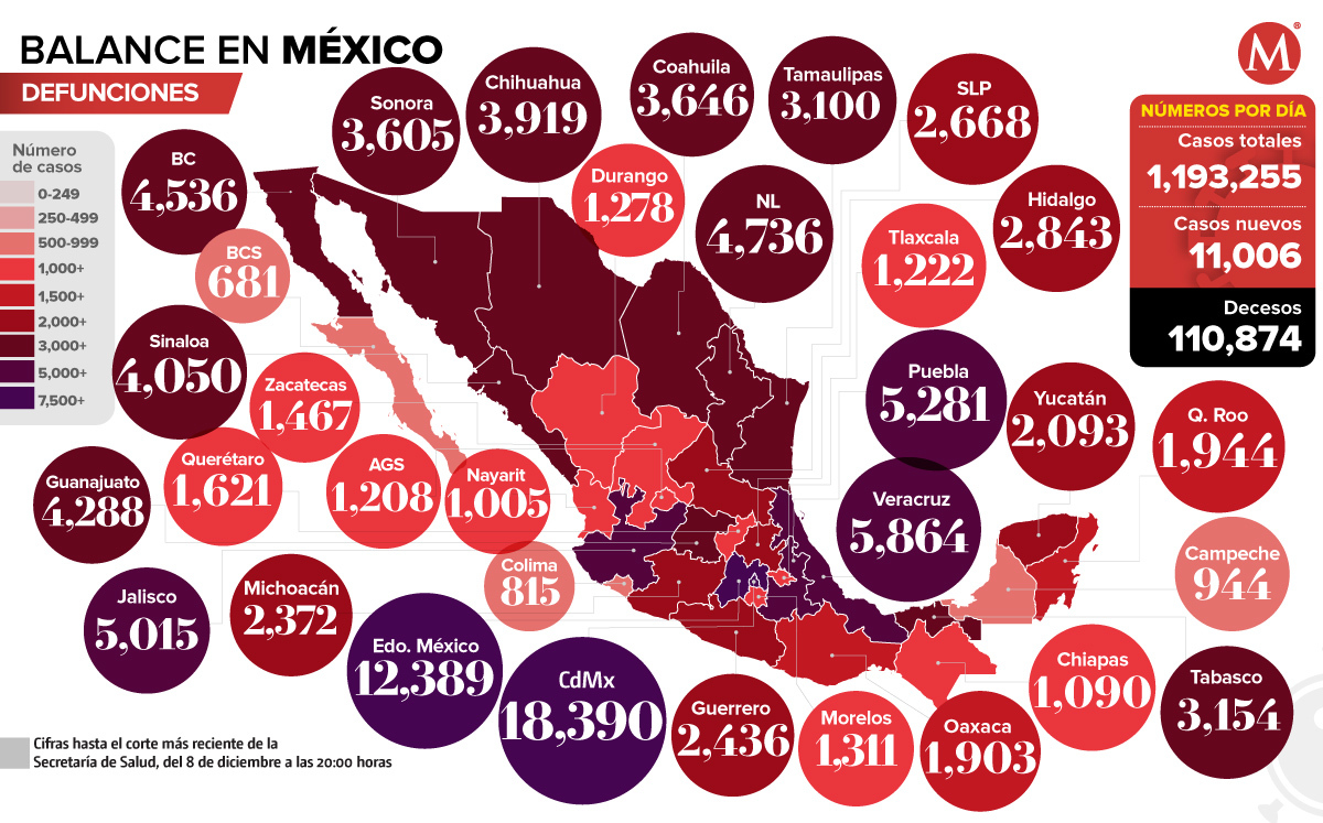Mapa de muertes por coronavirus en México