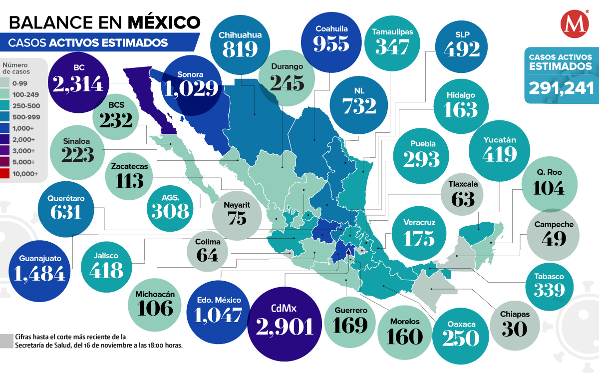 La capital de la República contabiliza 2 mil 901, Baja California se estiman 2 mil 314, Guanajuato reporta mil 484, en el Estado de México hay mil 047, y Sonora tiene mil 029.
