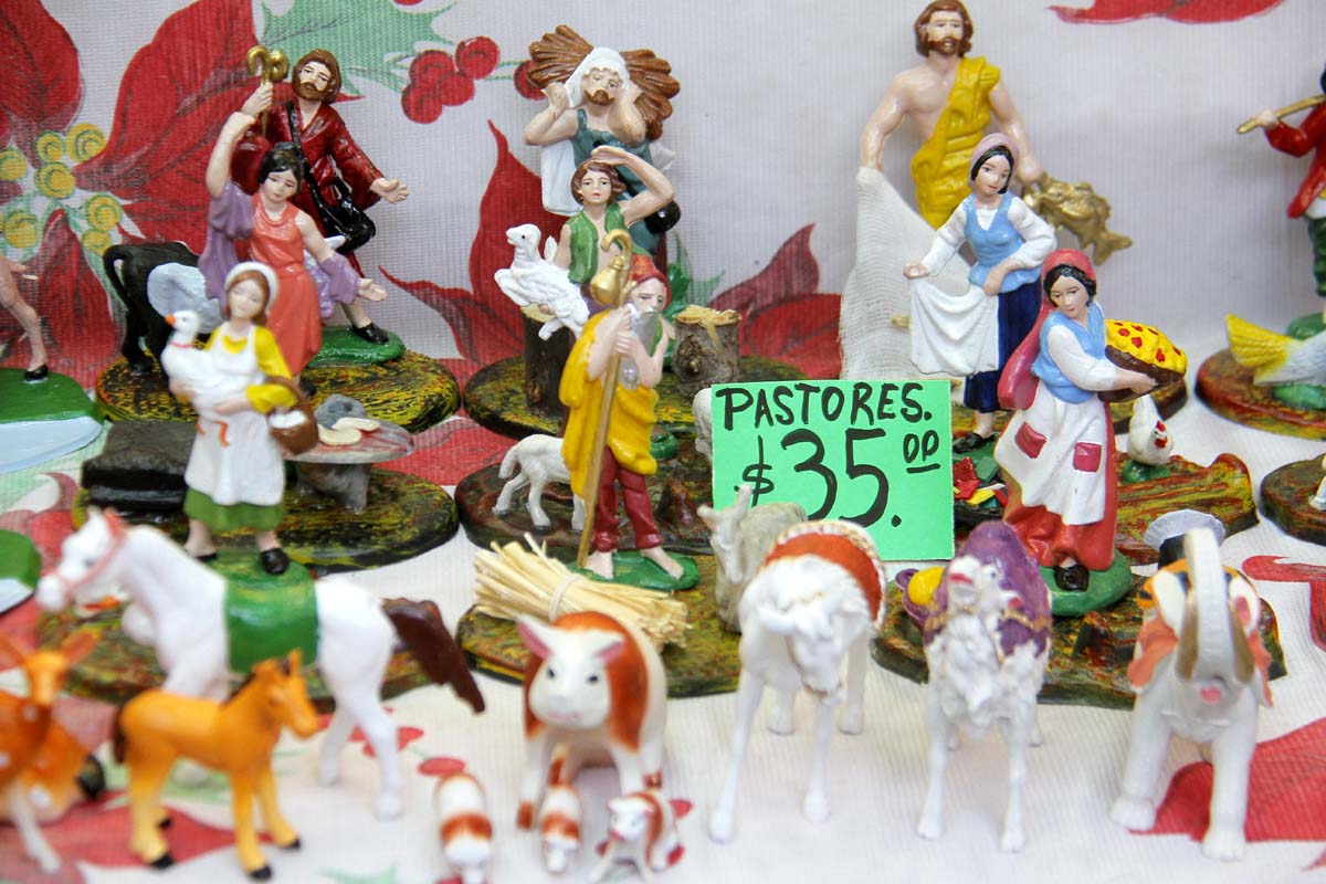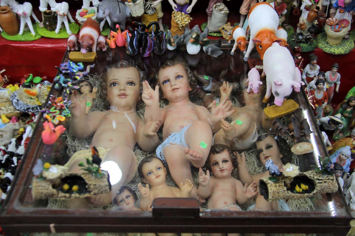 Hay también figuras del niño Jesús de todos los tamaños, desde los más pequeños hechos de plástico de 25 pesos hasta los más grandes de porcelana costando 600 pesos.