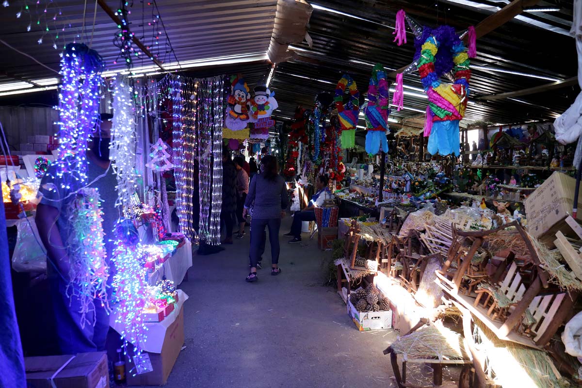 En el Mercadito Navideño se puede encontrar todo tipo de mercancía tanto para la instalación del pino navideño como para colocar un nacimiento, desde el más pequeño que nada más se basa en el Misterio y sus 8 piezas, hasta uno muy elaborado.