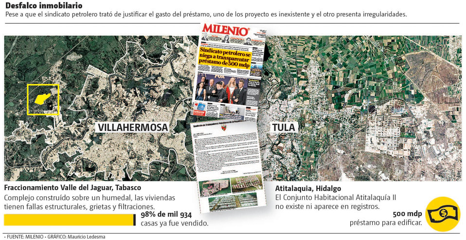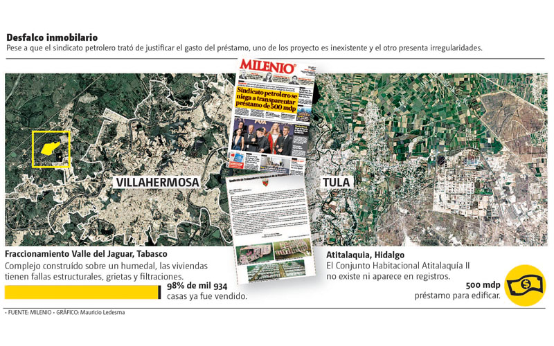 En un desplegado dirigido a MILENIO, el STPRM reconoció que obtuvo un préstamo de 500 millones de pesos en 2011 para la construcción de estos fraccionamientos en Tabasco e Hidalgo, además de otro en Veracruz.