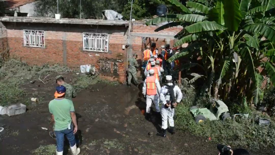 Elementos del Ejército, Guardia Nacional, Protección Civil estatal y municipal y policías apoyaron a las tres familias más afectadas para sacar todos sus muebles y ropa.