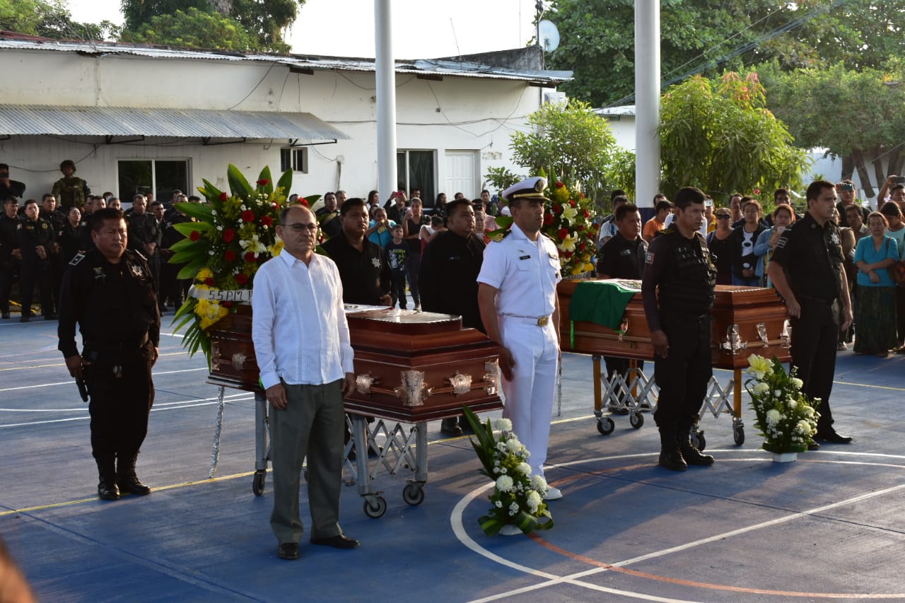 Las autoridades civiles, militares y policiales asistieron a los honores de Roger Olaf Hernández Díaz y Gilberto Pérez Roblero, quienes perdieron la vida en cumplimiento de su deber.