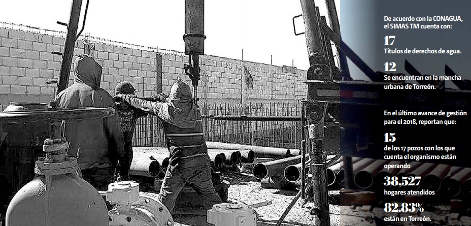 De acuerdo con la Conagua, el Simas TM cuenta con 17 títulos de derechos de agua de los cuales 12 se encuentran en la mancha urbana de Torreón.
