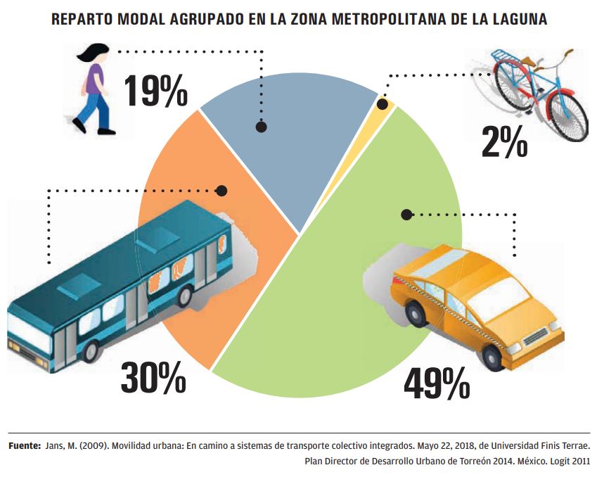 El transporte público es uno de los principales modos de viaje en Torreón. Si el transporte cuenta con una buena calidad, eficacia y precio, mayor será el número de personas que lo usen, de no ser el caso, la movilidad de las personas se dificultará ocasionando un gasto elevado dentro de sus ingresos, optando por medios individuales que tienden a inducir más tráfico a la ciudad.