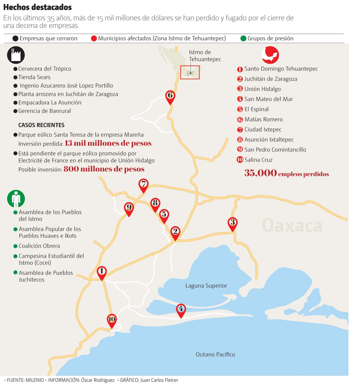 De acuerdo con reportes del Centro Empresarial del Istmo de Tehuantepec, las presiones políticas y sociales contra la inversión privada en la región han generado en los últimos 35 años pérdidas por más de 15 mil millones de dólares.