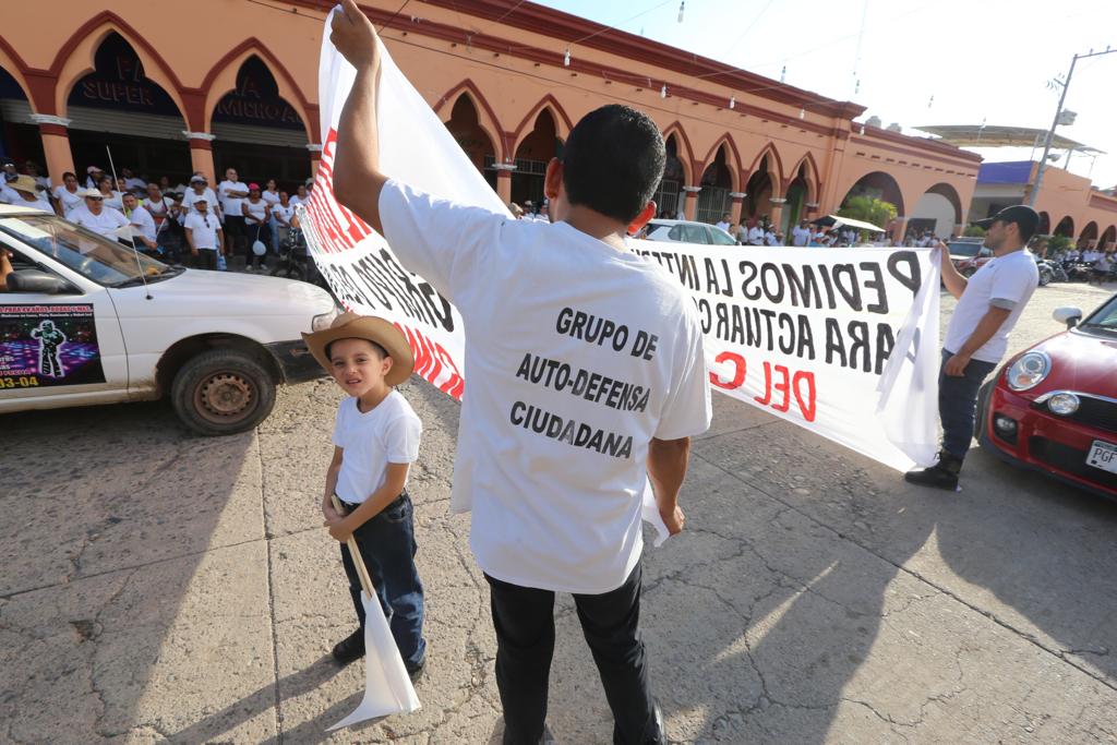 Pobladores de Tepalcatepec marchan contra la violencia que en el municipio de la Tierra Caliente de Michoacán.