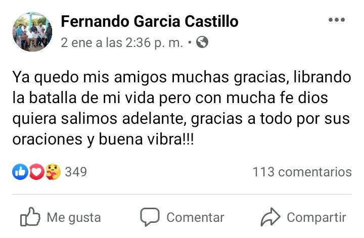 Posteriormente, el 2 de enero, realizó otra publicación, donde mencionó que ya estaba superando la crisis de salud, sin embargo, ayer, amigos y familiares anunciaron que había fallecido.