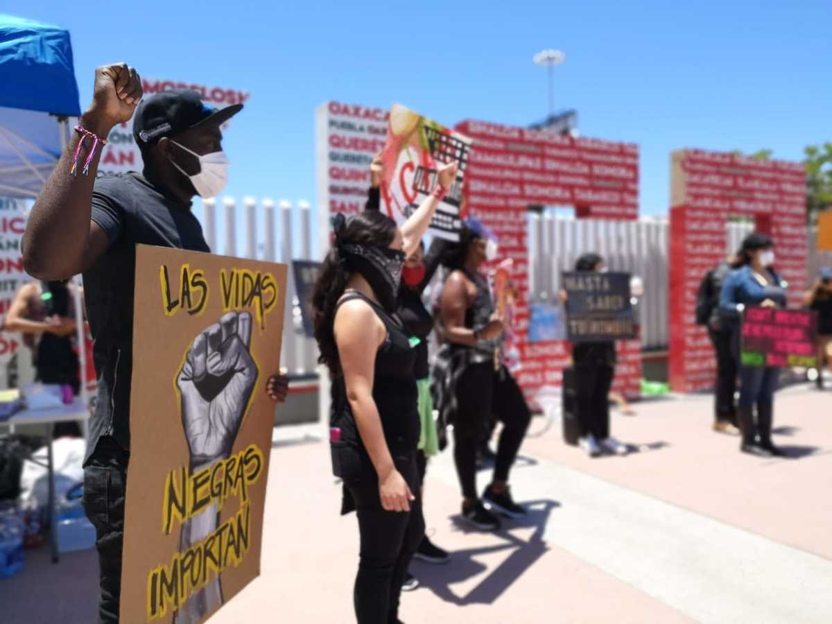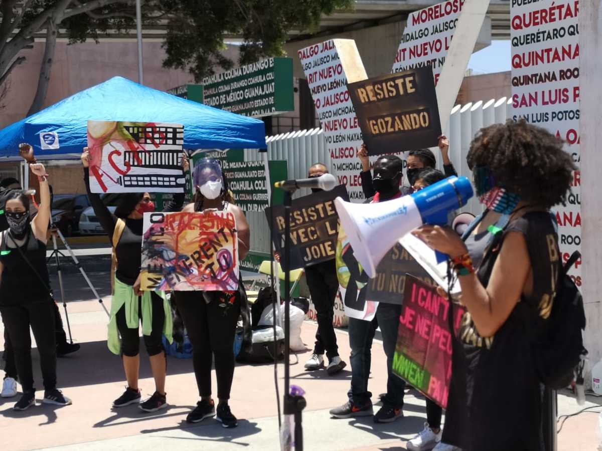 A un costado del cruce fronterizo El Chaparral, que desde hace tres meses está cerrado por la pandemia del covid-19, se reunieron los manifestantes, entre ellos el haitiano Jean Debis Louis que llegó desplazado a esta frontera hace cuatro años.