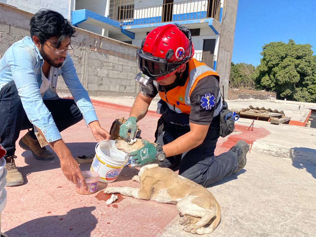 La mascota en mención requirió ser atendida de inmediato ya que presentó raspones en diferentes partes del cuerpo, así como desnutrición y deshidratación por el tiempo que permaneció atrapada.