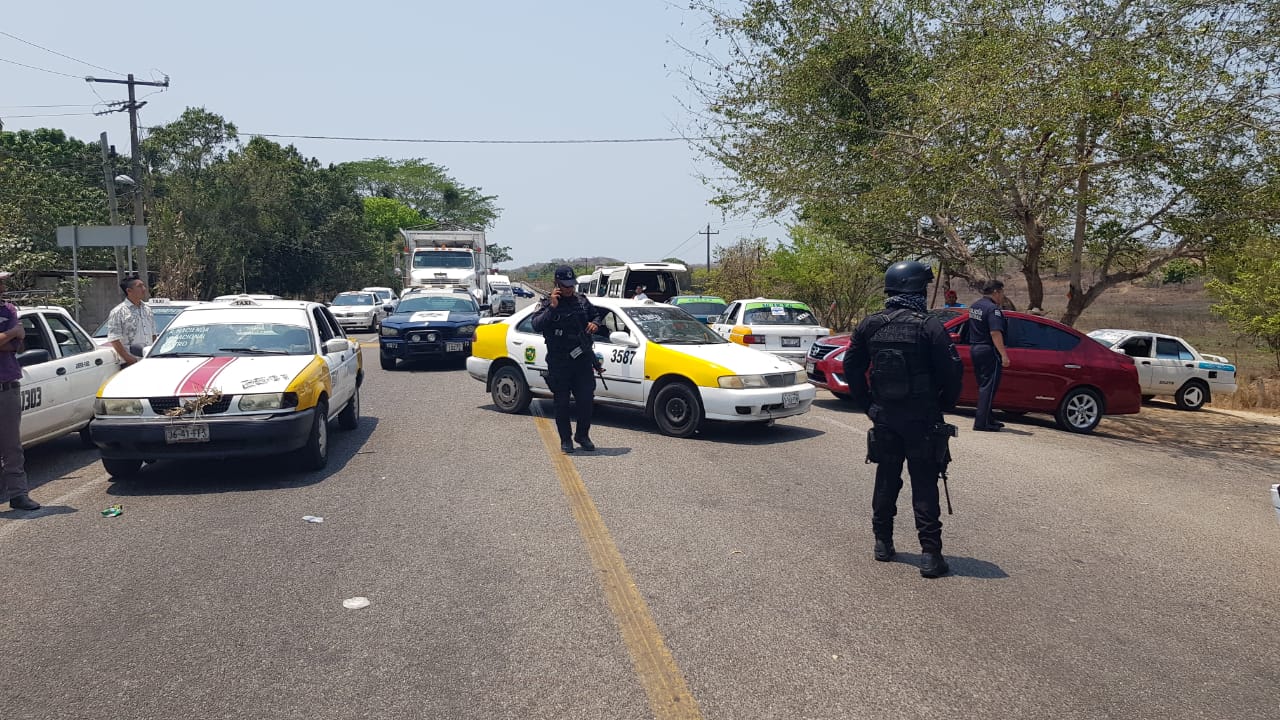 Alrededor de las 10:30 horas, unos 50 manifestantes atravesaron una docena de vehículos provocando con ello un caos vehicular sobre la carretera federal con rumbo al municipio de San Marcos.