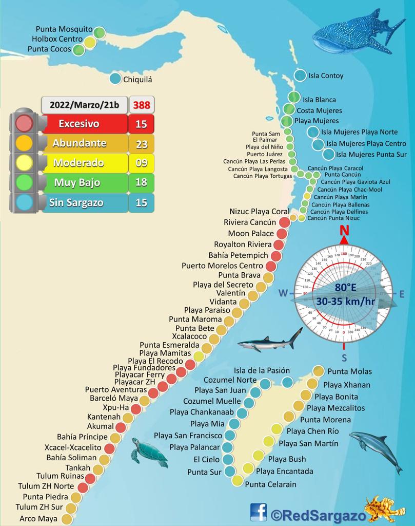 La Red de Monitoreo de Sargazo de Quintana Roo advirtió de la presencia de una gran mancha al norte de Honduras que se desplaza hacia el Caribe mexicano.
