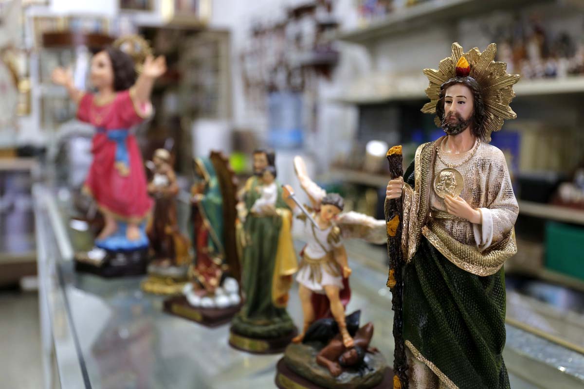 Sentado y vigilante de sus negocios, Armando Romero Martínez se encuentra en plena talacha, pegando las piezas rotas de un niño Dios. Al preguntarle quién es quién, o cuáles santos encabezan la lista de los más populares apuntó que el universo es grande.