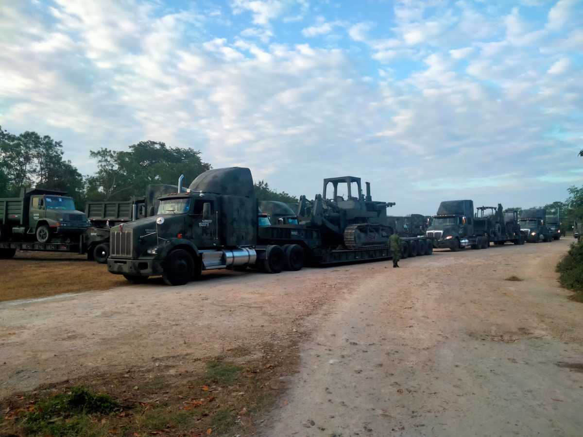 Este lunes partieron de Chetumal con destino a Tulum 34 vehículos de la Secretaría de la Defensa Nacional (Sedena) que apoyarán en las obras de construcción del Tren Maya en Quintana Roo.