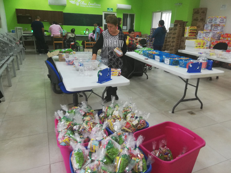 “A Luis Fernando le toca colocar el Nugs, a Luis Javier, el Pulparindo, Beto trabaja con el Duvalín y el Bocadín, Juanjo apoya supervisando que todas las luces verdes estén prendidas, la señora Angélica deposita el dulce, el chicle, pica botón, mientras que Tere apoya oprimiendo el botón con su barbilla. La que marca el ritmo de la linea de producción y Tommy quien se fija que todos los días estén en verde para oprimir el botón, de tal manera que la banda avanza y Paola recibe los dulces final de la banda”, comentó Clara Ocampo, coordinadora del área Productiva de Alas Creativas.