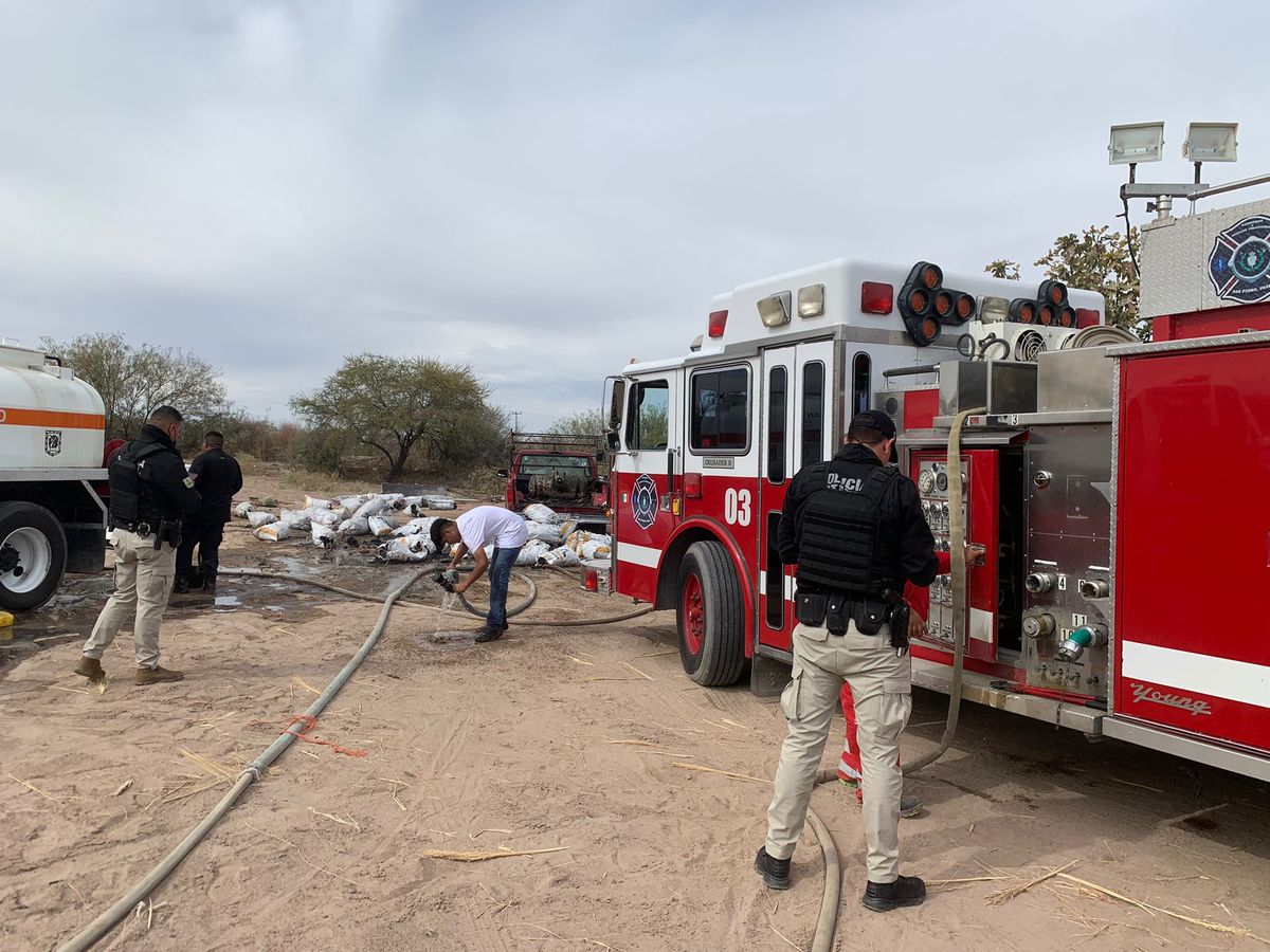 Al arribo de los bomberos lo primero que tuvieron que hacer fue descargar el carbón para poder enfriarlo, ya que la camioneta contaba con sistema de gas el cual se empezó fugar y provocó que la llama se hiciera más grande.