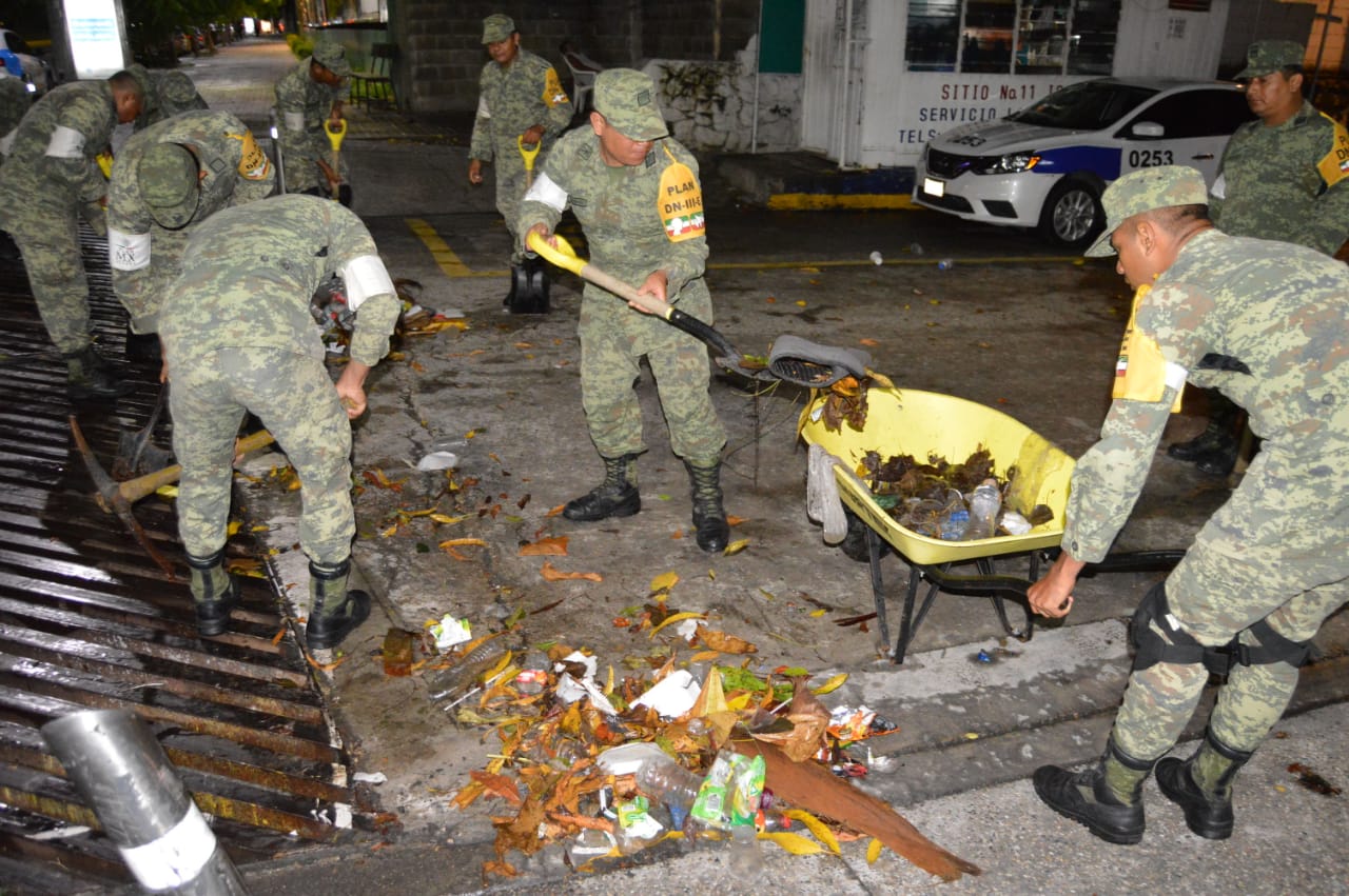 Mientras que en Acapulco, un grupo de militares realizó labores de limpieza de canales y alcantarillas para evitar inundaciones en las principales vías.