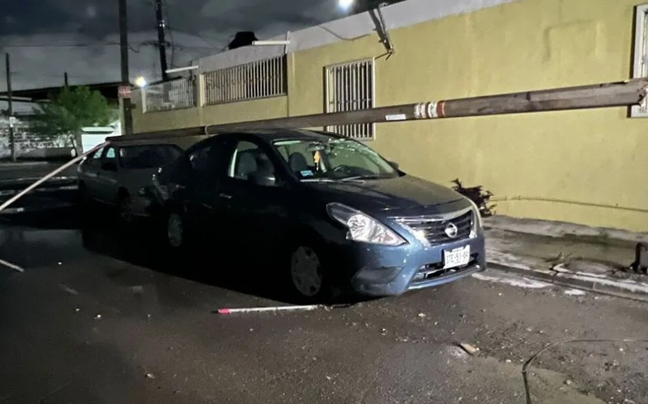 En Guadalupe, un poste de energía eléctrica cayó sobre dos vehículos estacionados, en calles de la colonia Valle de San Antonio.
