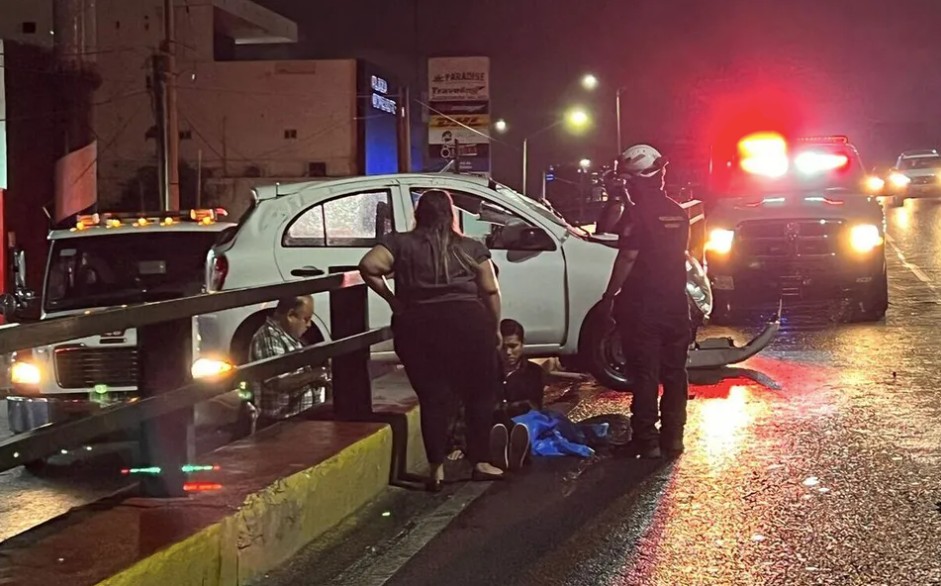 Abraham Alonso, de 24 años, resultó con posible fractura del brazo derecho tras el estrellamiento contra el barandal de contención, mientras que el conductor identificado como Joshua Alejandro López, de 32, resultó ileso.
