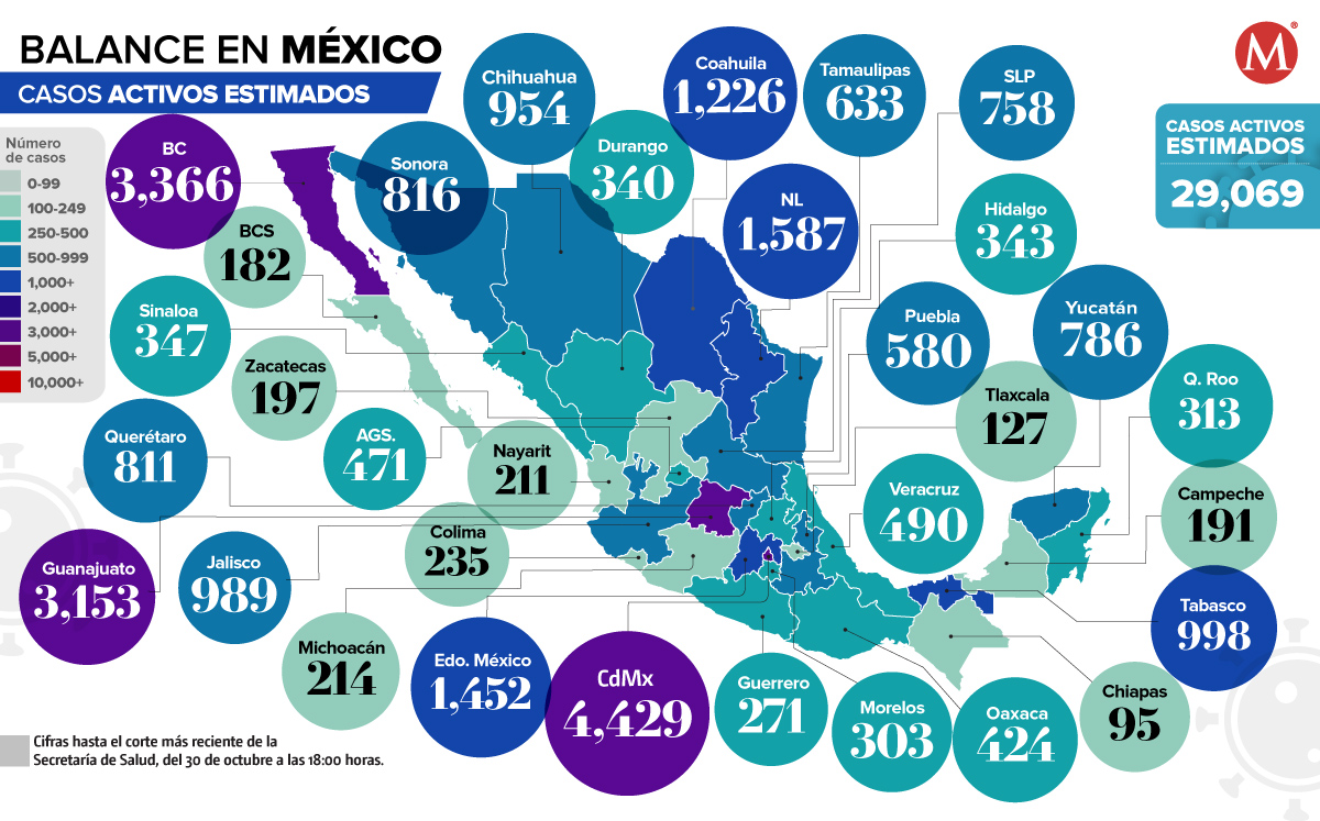 Los casos activos se estiman en 29 mil 069.