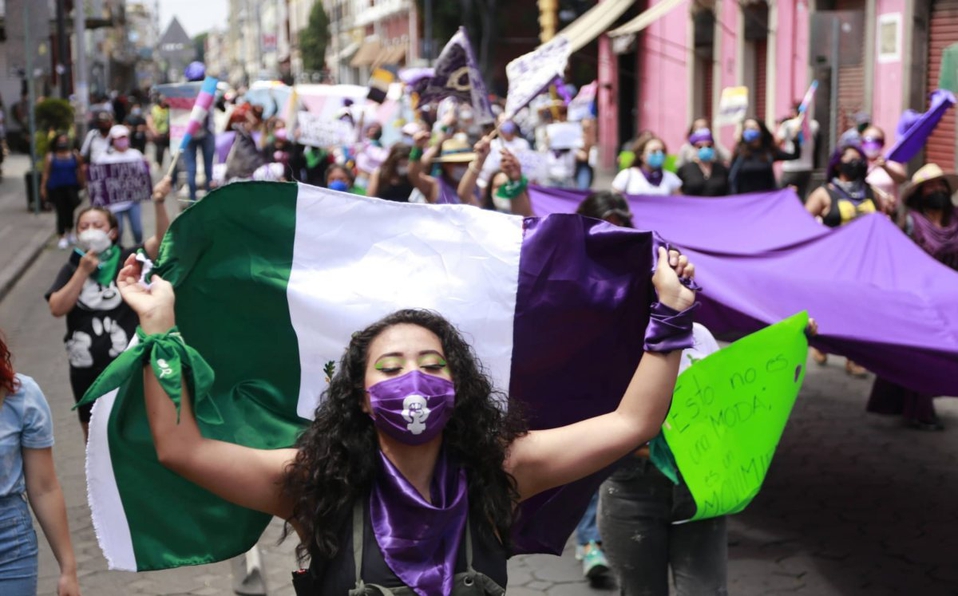 Colectivo Mujeres Unidas de Puebla se agrupan para iniciar una marcha rumbo a Casa Aguayo.