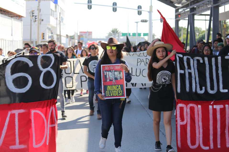 A 51 años de la matanza de Tlatelolco, los estudiantes de la Facultad de Ciencias Políticas y Sociales de la Universidad Autónoma de Coahuila marcharon para conmemorala.