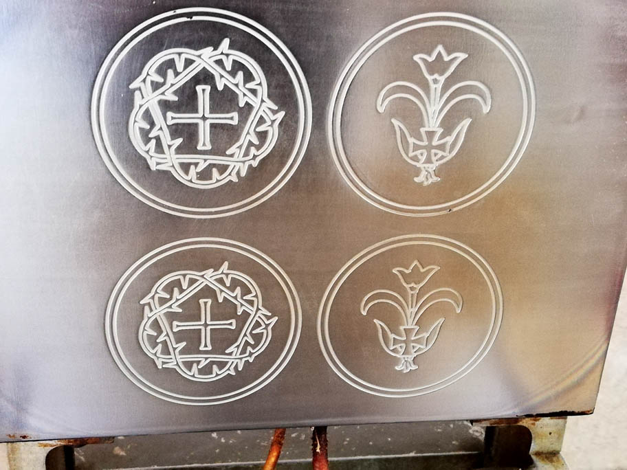 Explicó que la placas tiene grabados, son monogramas litúrgicos, "cuando hicieron las placas pusieron varios modelos diferentes. En los empaques las ponemos en general revueltas".