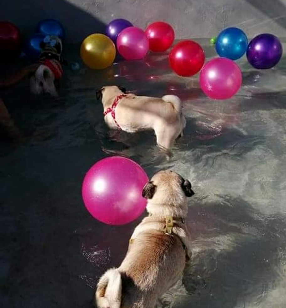 Alejandra y Kendra, las organizadoras del festejo, rentaron un salón y montaron en escenario, donde se acondicionó una alberca especial para las mascotas, que por más de tres horas, disfrutaron del agua y otras actividades.