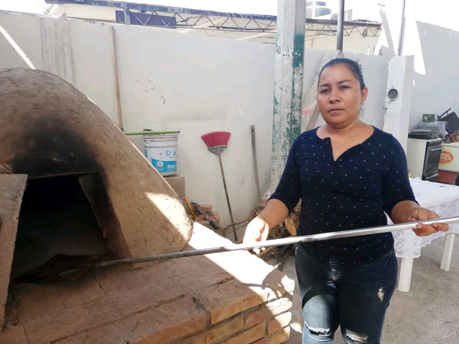 En su hogar localizado a un costado del libramiento Corralitos - Francisco I. Madero, tiene un horno de adobe y cerámica que comentó, elaboró su esposo y un primo.