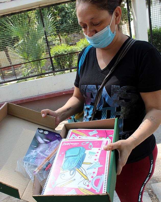 “También nos dieron libros pero eso fue como más de un mes que nos los entregaron igual, así, pero ‘pos’ qué le digo. Ahorita me dieron esta cajita mas no la he abierto”. Después de asomarse confirma que son tres cuadernos, un juego de geometría, dos plumas, dos lápices y un libro. Se trata de un ejemplar de Las guaridas de las lechuzas, de Antonio Ramos Revillas.