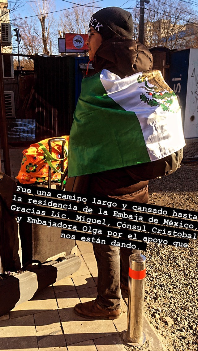 "Fue un camino largo y cansado hasta la residencia de la Embajada de México, gracias Lic. Miguel, cónsul Cristóbal (González Ascencio) y Embajadora Olga (García Guillén) por el apoyo que nos están dando", sin dar más detalles al respecto.
